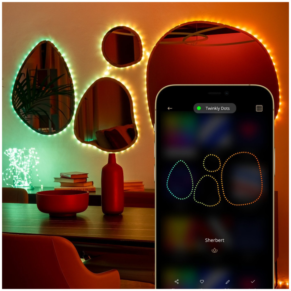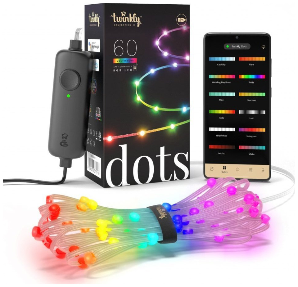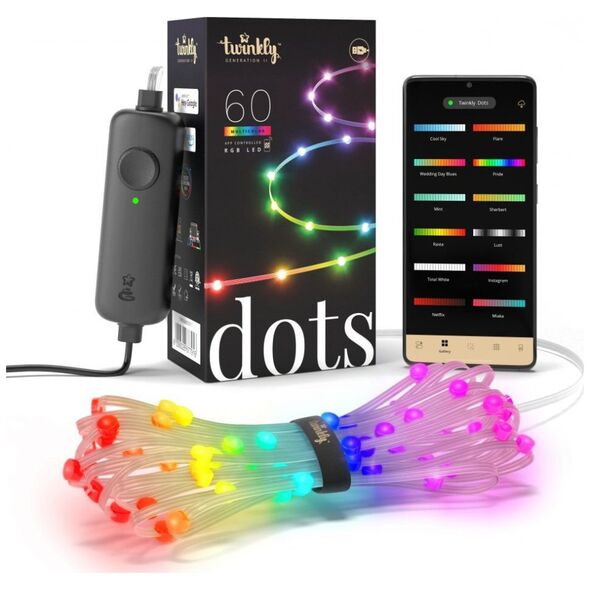 Twinkly Dots. Τύπος προϊόντος: Γιρλάντα, Χρώμα προϊόντος: Διαφανές, Χρώμα: Μονόχρωμο. Τάση: 24 V. Μήκος καλωδίου τροφοδοσίας: 3 m, Απόσταση μεταξύ των λαμπτήρων: 5 mm, Διάμετρος λαμπτήρα: 8 mm. Ποσότητα ανά συσκευασία: 1 τεμ., Τύπος συσκευασίας: Κουτί{Νέα ενεργειακή κλάση} Κατηγορία G. {Νέα ενεργειακή κλάση} Κατηγορία G. {Νέα ενεργειακή κλάση} Κατηγορία G. {Νέα ενεργειακή κλάση} Κατηγορία G