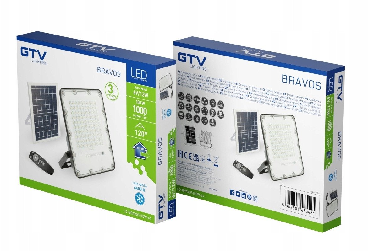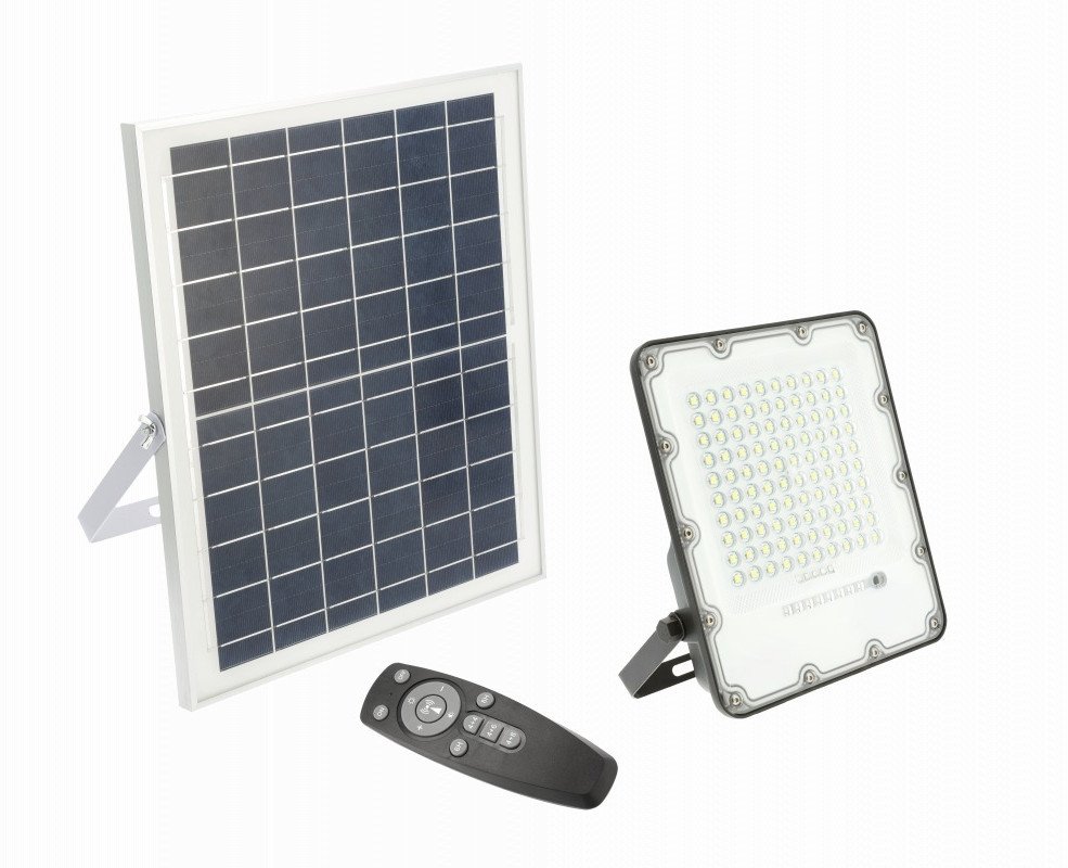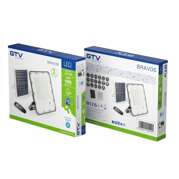 LED προβολέας GTV BRAVOS ηλιακός επαναφορτιζόμενος IP65 100W 6400K 1000lm 120deg με τηλεχειριστήριο