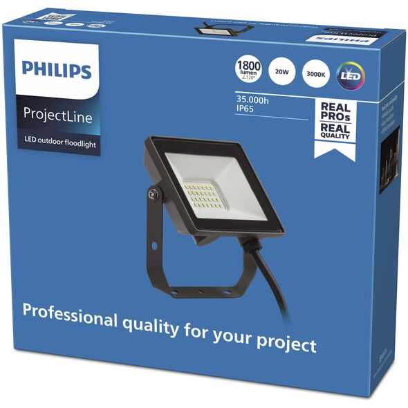 LED προβολέας PHILIPS, IP65, 20W, 3000 K, 1800 lm, μαύρο, 14 x 2.9 x 12.5 cm
