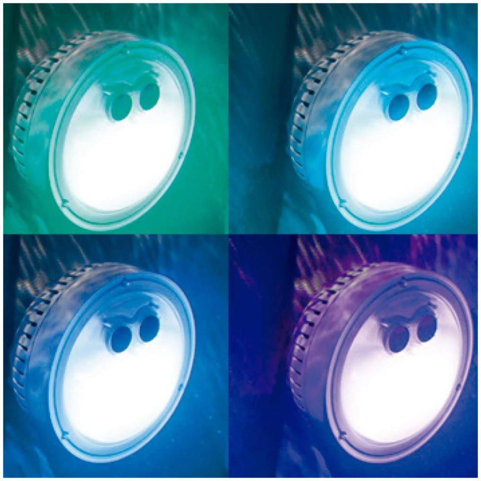 Δημιουργήστε μια χαλαρωτική ατμόσφαιρα στο νερό με το πολύχρωμο φως LED για το υδρομασάζ PureSpa! Το φως LED φωτίζει με έως και πέντε διαφορετικά χρώματα: λευκό, πράσινο, γαλάζιο, μπλε και μοβ. Μπορείτε να επιλέξετε ανάμεσα στη λειτουργία ενός χρώματος και στη λειτουργία εναλλαγής χρωμάτων. Δύο ώρες μετά την ενεργοποίηση, το LED σβήνει αυτόματα. Το φως LED είναι συμβατό μόνο με υδρομασάζ χωρίς πίδακες μασάζ JET. Για τη λειτουργία απαιτούνται 3 μπαταρίες AAA (δεν περιλαμβάνονται).