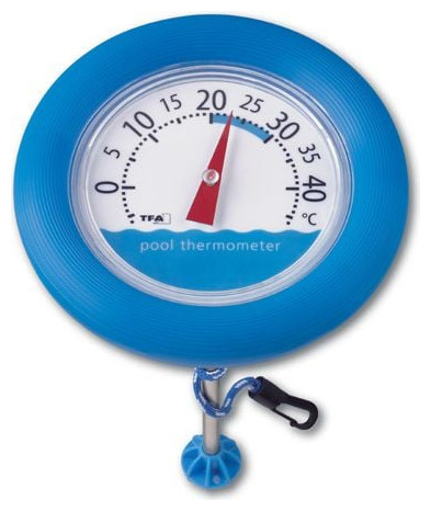 Ρολόι πισίνας Θερμόμετρο πισίνας. Υλικό: πλαστικό, το θερμόμετρο επιπλέει στο νερό. Διαστάσεις Ø 200 x 350 mm. Βάρος 313 g.{Type} Θερμόμετρα . {Type} Θερμόμετρα