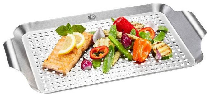 Νόστιμες λιχουδιές όπως ψητά λαχανικά, εσκάλοπες και άλλα μπορούν εύκολα να παρασκευαστούν με λεπτό και υγιεινό τρόπο στο δίσκο BBQ από υψηλής ποιότητας ανοξείδωτο ατσάλι - κυκλοφορία αέρα χάρη σε μια ειδική διάτρητη δομή, - ψηλά{Type} Δίσκοι και πιάτα
