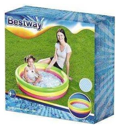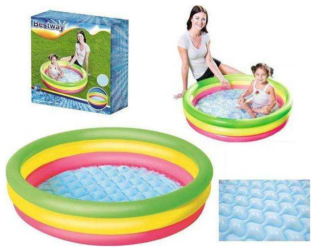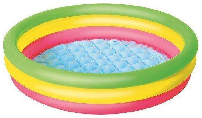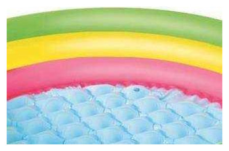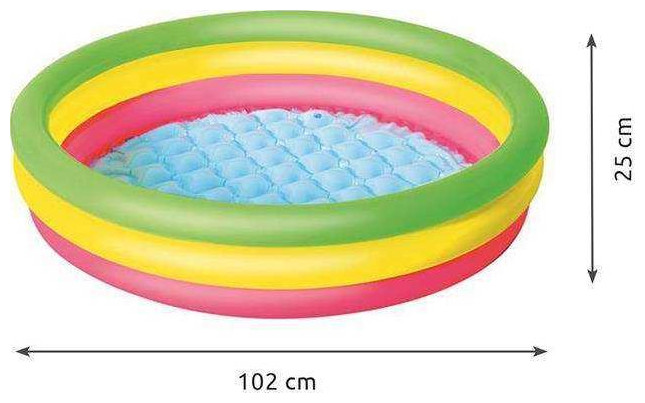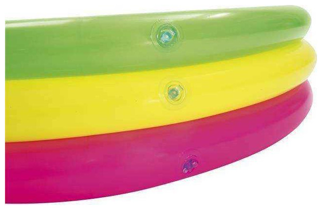 Παιδική καλοκαιρινή πισίνα εξοπλισμένη με βαλβίδες ασφαλείας. Κατασκευασμένο από ανθεκτικό υλικό βινυλίου. Τρεις ίσοι κύκλοι σε πράσινο, κίτρινο και κόκκινο. Ένα μαλακό, φουσκωτό πάτο που εξασφαλίζει υψηλή άνεση κατά το μπάνιο. Περιλαμβάνεται έμπλαστρο επισκευής.