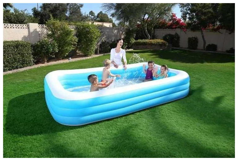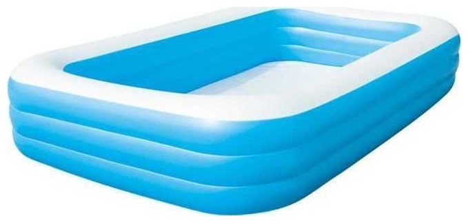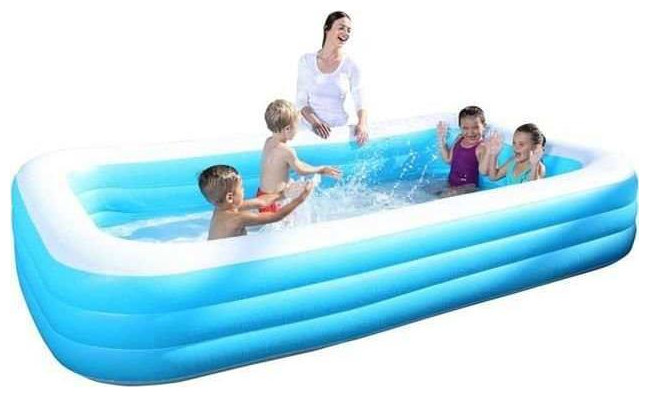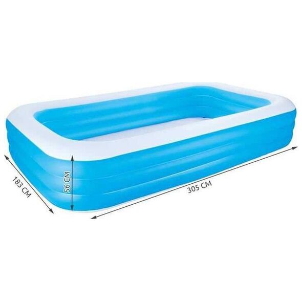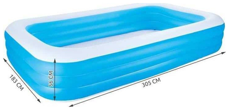 Χρειάζεστε μερικές φορές να δροσιστείτε μια ζεστή μέρα και δεν έχετε χρόνο να πάτε στην πισίνα της πόλης ή να πάτε στο νερό; Γι' αυτό σας παρουσιάζω αυτήν την καταπληκτική φουσκωτή οικογενειακή πισίνα που έχει σχεδιαστεί για να χαλαρώνει όλη η οικογένεια τις ζεστές μέρες. Μπορείτε να το ξεδιπλώσετε πολύ γρήγορα, να το γεμίσετε με νερό και η χαλάρωση σας είναι έτοιμη. Μια μεγάλη, φουσκωτή πισίνα με διαστάσεις 305 cm x 183 cm x 56 cm θα φιλοξενήσει όλους όσους χρειάζονται ένα αναψυκτικό. Η πισίνα αποτελείται από τρεις φουσκωτούς δακτυλίους που την κάνουν ανθεκτική. Το φανταστικό μπλε και άσπρο χρώμα σας ενθαρρύνει να παίξετε σε αυτό. Το προϊόν είναι κατασκευασμένο από ισχυρό PVC, εξασφαλίζοντας μακροχρόνια χρήση, ώστε να είστε σίγουροι ότι πρόκειται για αγορά πολλών ετών.