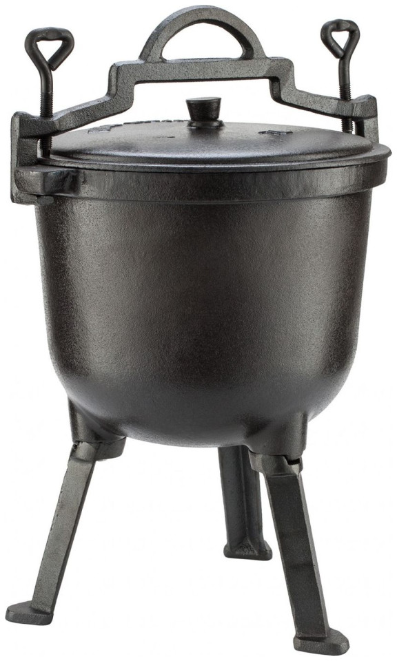 Odkręcane nogi umożliwiają postawienie kociołka bezpośrednio na palniku gdy nie mamy możliwości przyrządzania potraw na ognisku. Przykręcana pokrywa utrzymuje parę wewnątrz naczynia co nadaje przyrządzanym potrawom idealny smak, a także przyśpiesza proces duszenia.