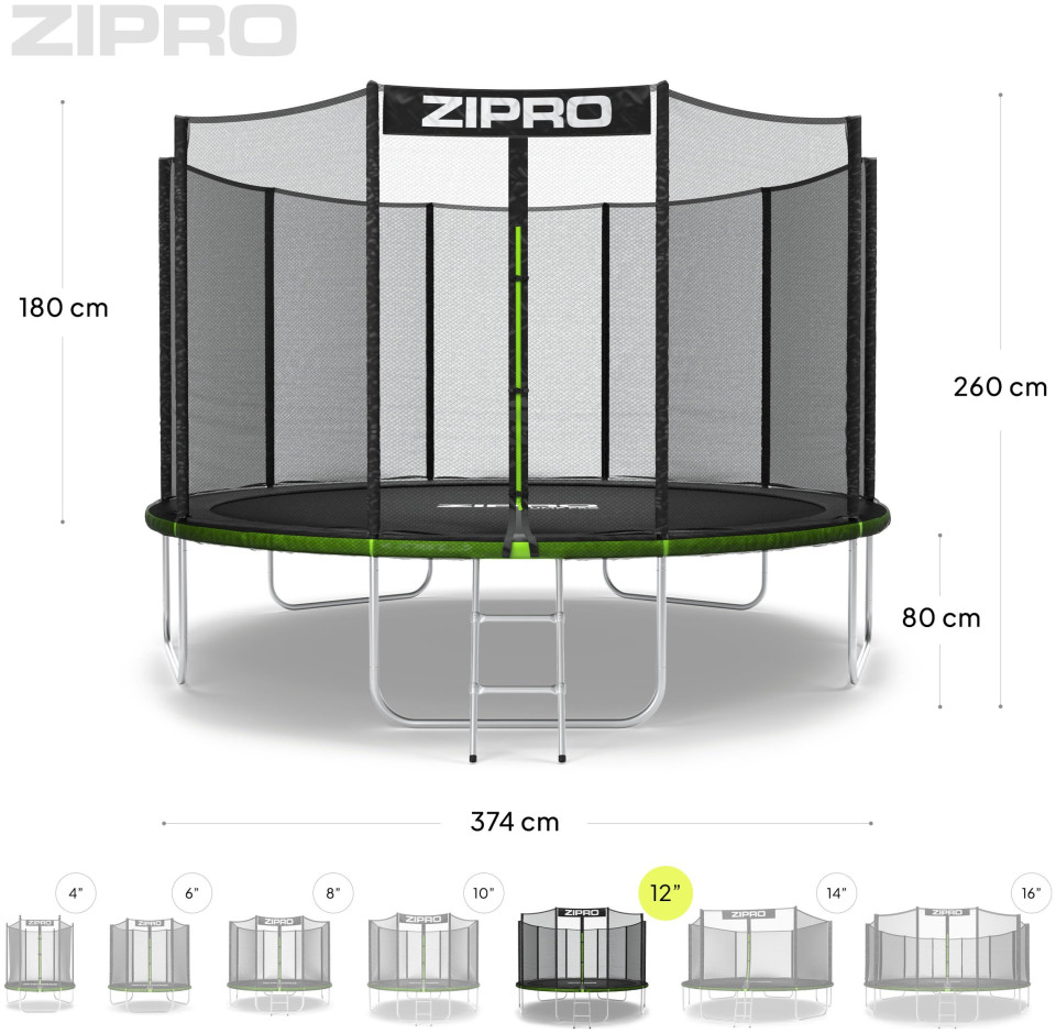 Trampolina ZIPRO Jump Pro OUT 12FT 374 cm z siatką zewnętrzną