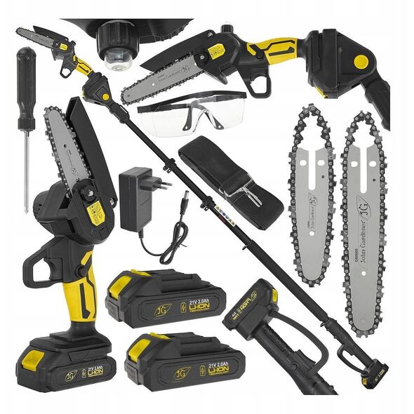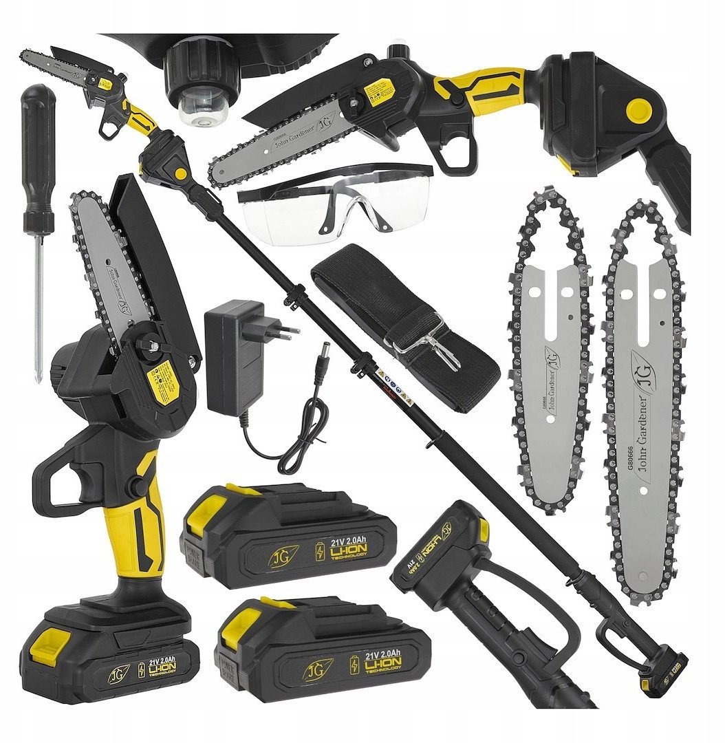 Piła łańcuchowa akumulatorowa 6" w walizce 2x2.0Ah 21V – zestaw XXL z wysięgnikiem teleskopowym 1.65-2.50m (10)