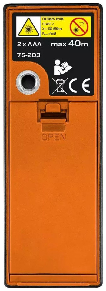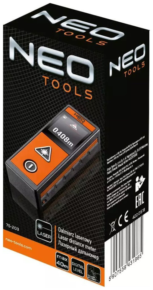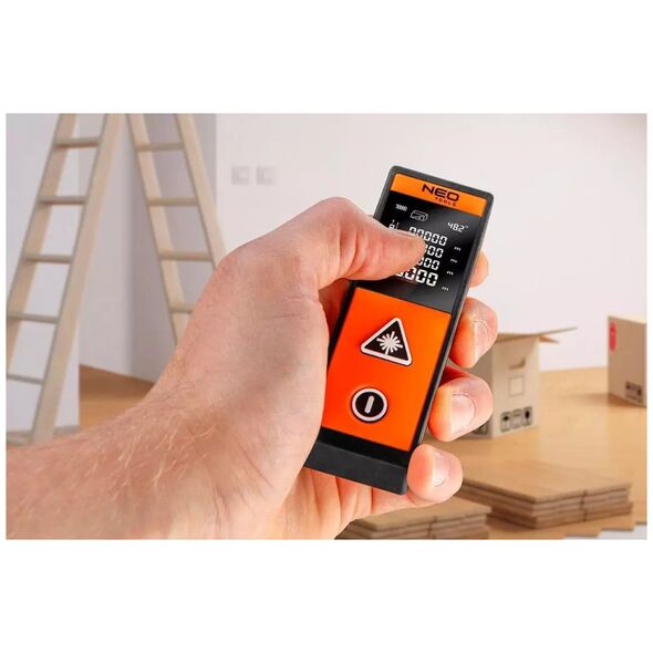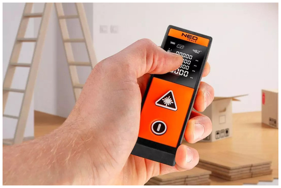 Το αποστασιόμετρο λέιζερ NEO (75-203) είναι μια συσκευή υψηλής ποιότητας με μέγιστη μέτρηση 40 μέτρα και ελάχιστη 0,20 μέτρα, που σίγουρα θα διευκολύνει την εργασία σας. Εκτός από τη μέτρηση αποστάσεων, έχει πολλές άλλες χρήσιμες λειτουργίες, όπως τη μέτρηση του όγκου του δωματίου, της επιφάνειας και τον υπολογισμό τριγωνομετρικών συναρτήσεων. Το προϊόν σας επιτρέπει επίσης να ανακτήσετε έμμεσες διαστάσεις (χρησιμοποιώντας το Πυθαγόρειο θεώρημα) και συνεχείς διαστάσεις.