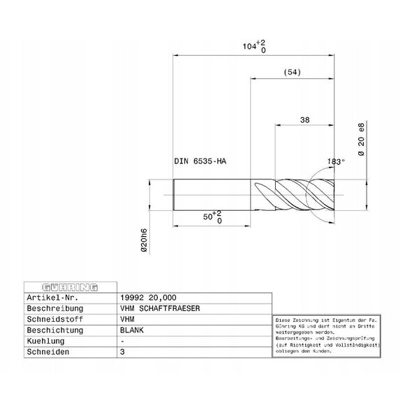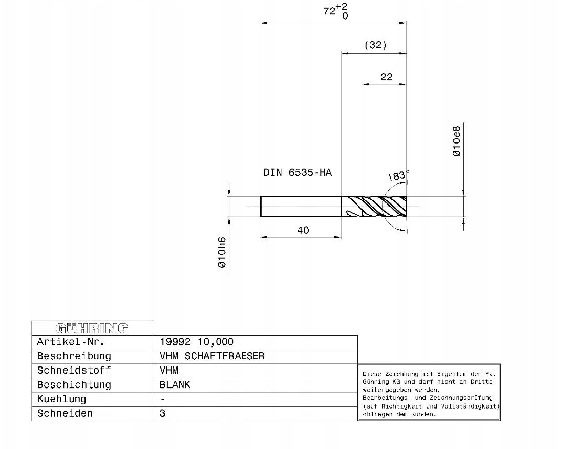 Κοπτικό καρβιδίου GUHRING ALU 19992 10.0 mm