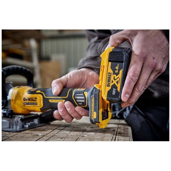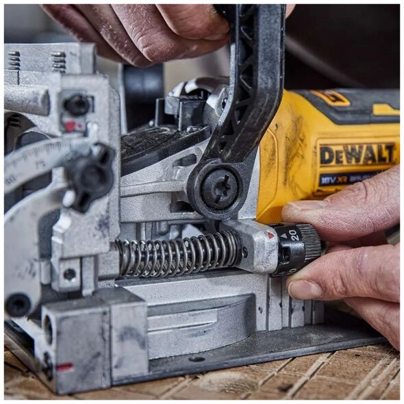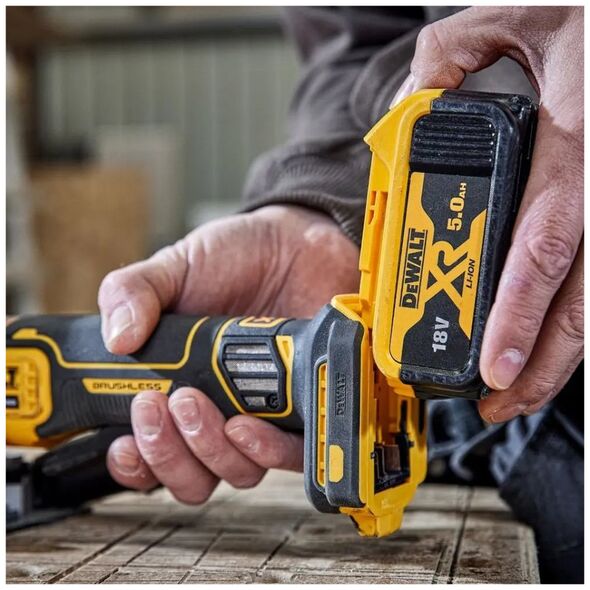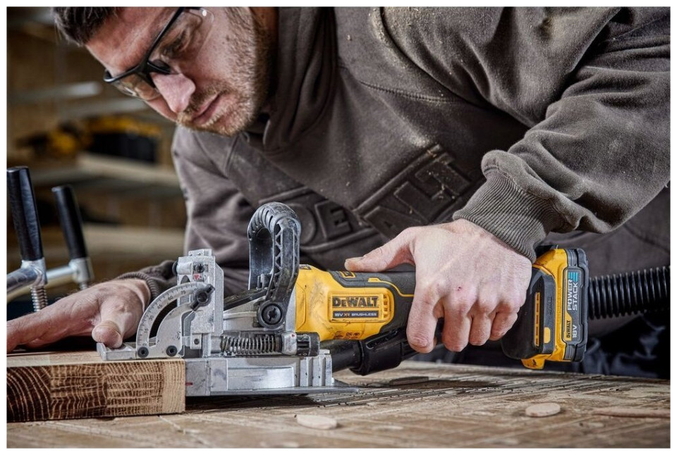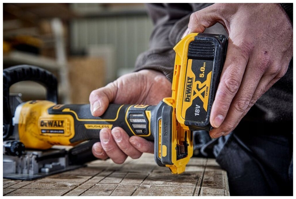 ΜΗΧΑΝΗ ΦΡΕΖΑΣ GROOVE DeWALT LAMELLO 18V XR - ΣΩΜΑ (Παρέχεται χωρίς φορτιστή, μπαταρίες και θήκη) Μοντέλο: DCW682 ΠΕΡΙΓΡΑΦΗ ΕΙΔΟΥΣ: Μηχανισμός σχάρα και γρανάζι για ακριβή κάθετη και οριζόντια τοποθέτηση του οδηγού Ρυθμίσεις βάθους φρεζαρίσματος για μεγέθη πείρου 0, 10, μέγιστο, 2, ; Δυνατότητα ακριβούς ρύθμισης Δυνατότητα χρήσης διαφορετικών βάθους σχισμής έως 20 mm για μεγαλύτερη ευελιξία χρήσης Συνδυασμένη ρύθμιση ύψους και γωνίας οδηγού, μόνιμα τοποθετημένη για ευκολία του χρήστη Εργονομική λαβή, 8 καθορισμένες βασικές ρυθμίσεις και παράθυρο στον οδηγό εγγυώνται ακρίβεια της εργασίας Σύστημα κλειδώματος άξονα που επιτρέπει γρήγορη και εύκολη αντικατάσταση κοπτικών με ένα κλειδί ΤΕΧΝΙΚΑ ΣΤΟΙΧΕΙΑ: Τάση: 18V Τύπος μπαταρίας: Ιόντων λιθίου Μέγιστη ισχύς: 900 W Ταχύτητα χωρίς φορτίο: 8000 rpm Μέγιστο βάθος κοπής: 20 mm Μέγιστη διάμετρος κοπής: 102 mm Ρύθμιση βάθους κοπής: 8/10/12 mm (για λάμπες 0/10/20) Βάρος : 2,5. kg ΤΟ ΣΕΤ ΠΕΡΙΛΑΜΒΑΝΕΙ: ΜΗΧΑΝΗ ΦΡΕΖΑΣ ΑΚΟΡΔΩΝ DeWALT DCW682N 18V (Παρέχεται χωρίς φορτιστή, μπαταρίες και θήκη) Φρέζα με σχισμή καρβιδίου Τσάντα συλλογής τσιπ Κλειδί Μύτη εξαγωγής σκόνης Συσκευασία χαρτοκιβωτίου