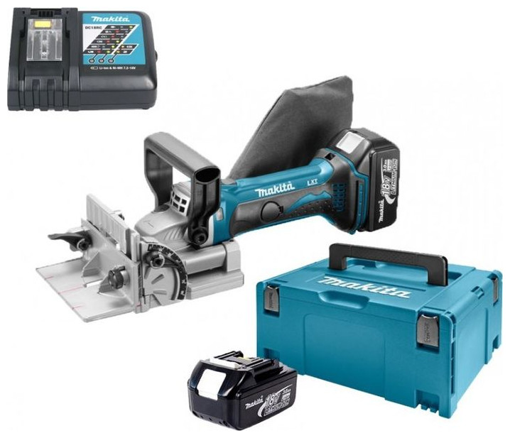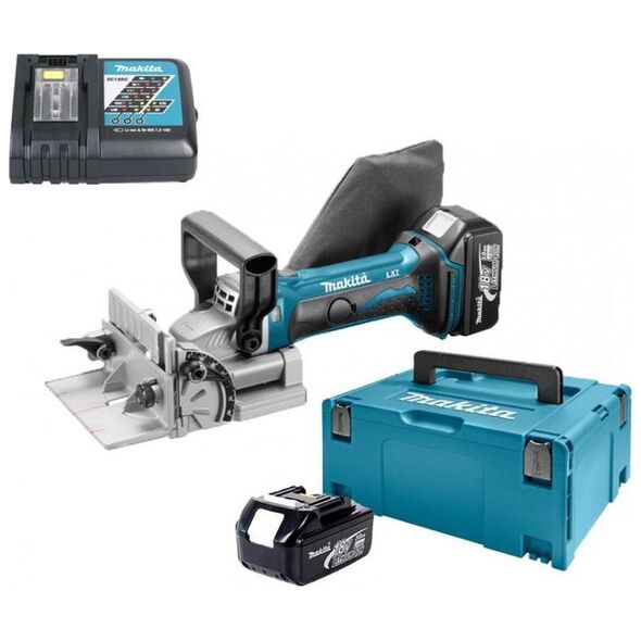 Makita frezarka do połączeń, lamelownica 18V 2x3,0Ah walizka makpac (DPJ180RFJ)