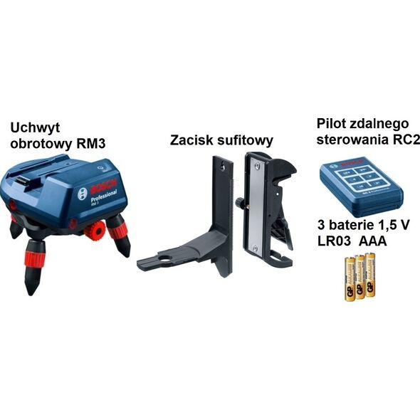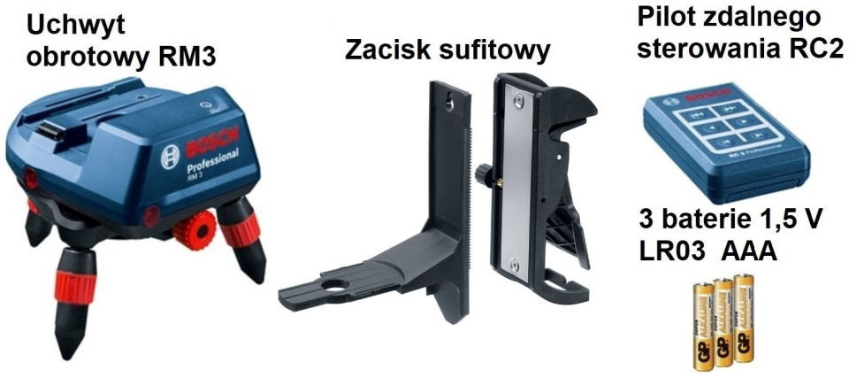 Uchwyt do Laser Liniowy Bosch RM 3 Kompleksowe rozwiązanie do precyzyjnych pomiarów i przenoszenia wymiarów wewnątrz pomieszczeń (Nr katalogowy 0.601.092.800 0601092800 )DANE TECHNICZNE: Waga, ok.: 0,500 kg Wymiary narzędzia (długość): 135 mm Wymiary narzędzia (wysokość): 120 mm WYPOSAŻENIE: 3 baterie 1,5 V LR03 (AAA) Pilot zdalnego sterowania RC2 Professional (0 601 069 C00) Uchwyt Wkład do L-BOXX Zacisk sufitowy WŁAŚCIWOŚCI PRODUKTU: Wielofunkcyjny uchwyt automatyczny RM 1 Professional umożliwiający dokładne pozycjonowanie linii laserowych oraz oferujący wiele opcji mocowania Możliwość sterowania za pomocą smartfona przez Bluetooth® lub za pomocą pilota RC 2 Professional Kompatybilny ze nowymi modelami GCL 2-50 C i GCL 2-50 CG Kompaktowa budowa i łatwa obsługa BOSCH Uchwyt RM 3 Instrukcję obsługi w języku polskim Kartę gwarancyjną Dokument sprzedaży (eDokument)