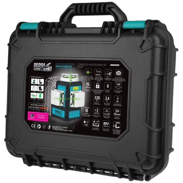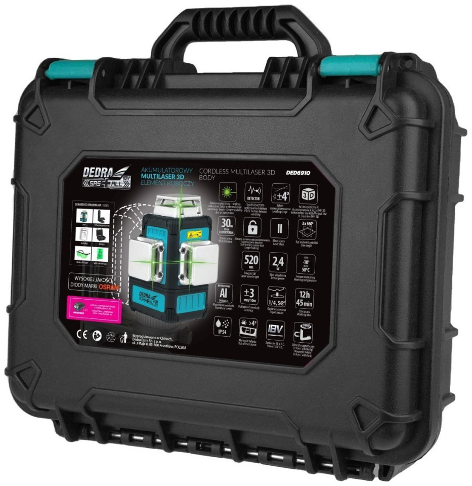 Dedra Πολυλέιζερ 3D 18V, πράσινο, βαλίτσα SAS