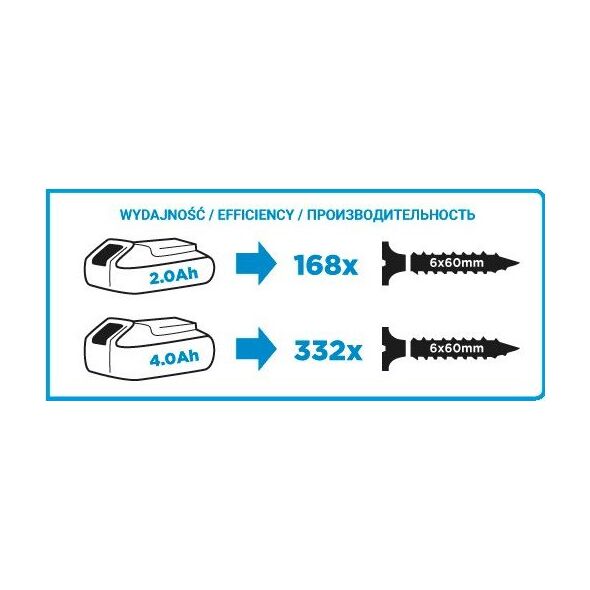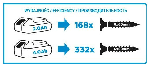 Λειτουργεί με μπαταρίες Li-Ion 18V, 2Ah ή 4Ah Energy+