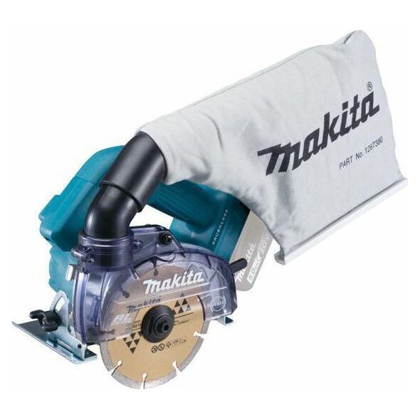 Akumulatorowa przecinarka DCC500 z tarczą diamentową zbudowana w oparciu o sieciowy model 4100KB z osłoną przeciwpyłową, która minimalizuje rozpraszanie się pyłu.