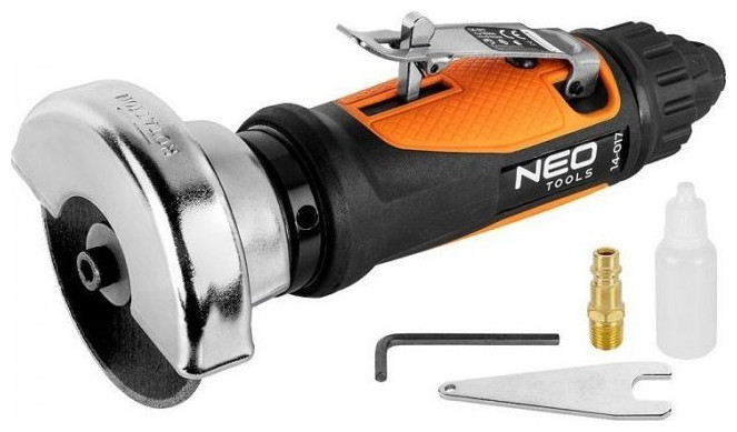 Ο πνευματικός κόφτης 75 mm 14-017 της NEO είναι ένα εργαλείο με δίσκο με διάμετρο 75 mm. Χαρακτηρίζεται από ταχύτητα 18.000 rpm και μέση κατανάλωση αέρα 115 l/min. Λειτουργεί σε μέγιστη πίεση 6,3 bar. Ο κόφτης είναι εξοπλισμένος με βύσμα 1/4". Είναι ένα εργονομικό και ελαφρύ εργαλείο, με βάρος μόνο 0,82 κιλά. Διαθέτει πιστοποίηση CE. Ο κόφτης συνιστάται για κοπή αμαξώματος, λαμαρίνας και μετάλλου.