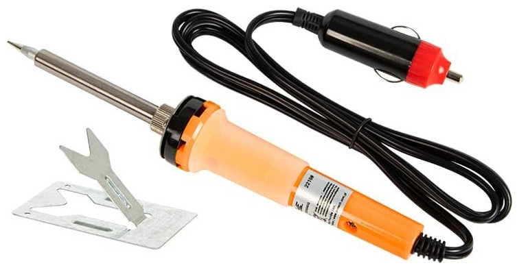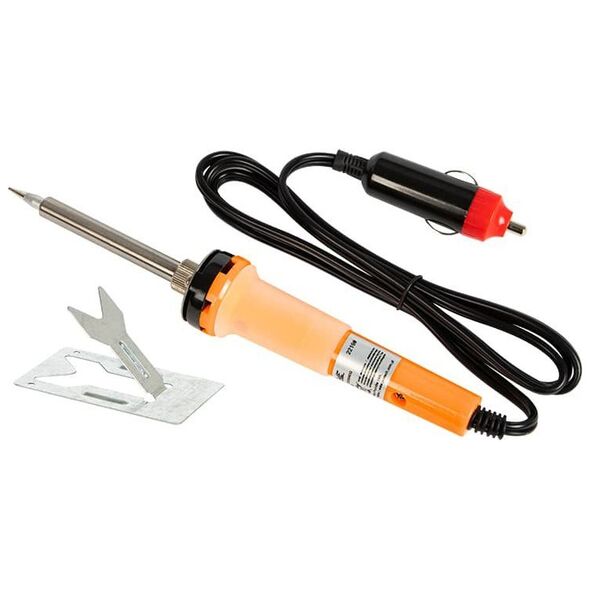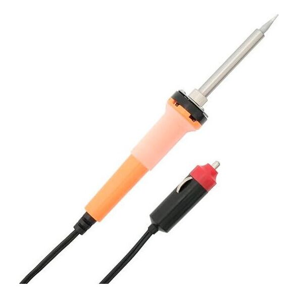 Lutownica kolbowa do lutowania drobnych podzespołów elektronicznych. Element grzewczy zastąpiony został grubym stalowym grotem. Przeznaczona do prac hobbystycznych jak i zastosowań profesjonalnych. Pokryta gumową osłoną rękojeść zapewnia bezpieczeństwo i wygodę pracy. Przewód zakończony został wtykiem zapalniczki dzięki czemu doskonale nadaje się do prac w samochodzie, w łodzi itp. czyli wszędzie tam gdzie nie ma dostępu do napięcia 230V.DANE TECHNICZNE:- Zasilanie: 12V- Moc: 40W- Temperatura pracy po rozgrzaniu: 300°COPAKOWANIE ZBIORCZE ZAWIERA 50 SZTUK