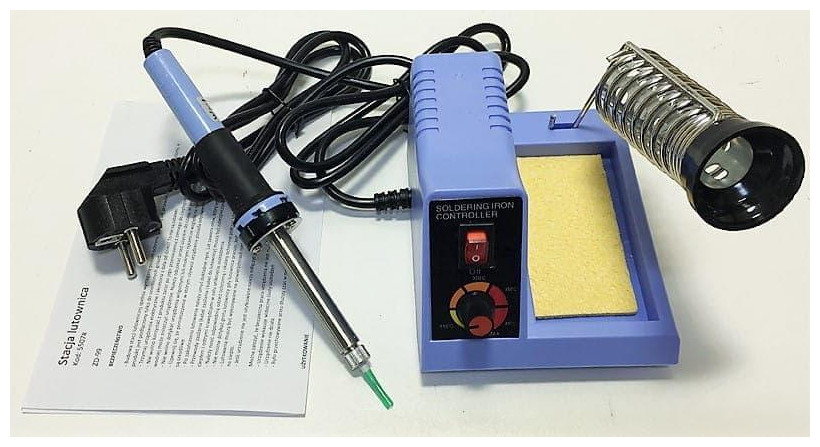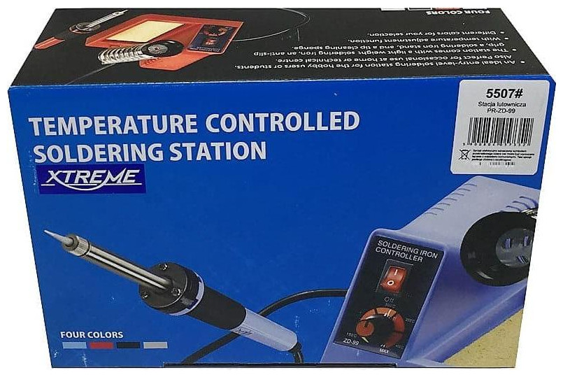 Stacja lutownicza Xtreme ZD-99 Najprościej mówiąc urządzenie, które składa się lutownicy oraz panelu, na którym ustawiamy temperaturę. Stacja może być z różnego typu lutownicami jednak najczęściej jest to zestaw z lutownicą oporową, która idealnie nadaje się do większej i mniejszej elektroniki oraz naprawy sprzętu elektrycznego. Podstawa takiej stacji jest zasilacz, w obudowie ze wzmocnionego tworzywa sztucznego lub metalu. Znajduje się na nim pokrętło, którym regulujemy temperaturę. Taka stacja znajdzie zastosowanie w warsztacie elektronika, ale równie dobrze sprawdzi się w warunkach domowych do zastosowań amatorskich. To wysokiej jakości, wygodna, łatwa w obsłudze stacja lutownicza posiadająca regulacje temperatury od 150 do 450C. Lutownica o mocy 48 W zapewnia doskonałą transmisję ciepła z elementu grzewczego do grota a także jego łatwą wymianę. Dane techniczne: Zasilanie: 230 V / 50 Hz Pobór mocy: 48W Zakres temperatur: 150-450 ° C Wymiary: 115 x 145 x 90 mm (Station), 198 mm (z uchwytem) Ta stacja lutownicza posiada: Płynną regulację temperatury Sygnalizację pracy za pomocą podświetlanego włącznika Izolowaną rękojeść Krótki czas nagrzewania lutownicy Włącznik ON/OFF z lampką Kompaktowy wygląd Wymienne groty