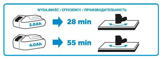 Λειτουργεί με μπαταρίες Li-Ion 18V, 2Ah ή 4Ah Energy+