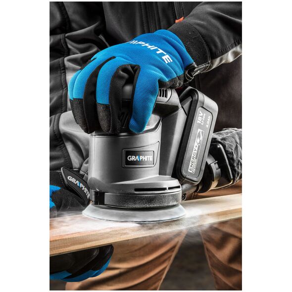 Το εκκεντρικό τριβείο GRAPHITE εγγυάται καθαρή και άνετη εργασία. Το εργαλείο μπορεί να χρησιμοποιηθεί εύκολα με το ένα χέρι, λειτουργώντας σε 3 εύρη ταχυτήτων. Το σύστημα εξαγωγής σκόνης αφαιρεί αποτελεσματικά τη σκόνη στο περιλαμβανόμενο δοχείο με ένα φίλτρο.