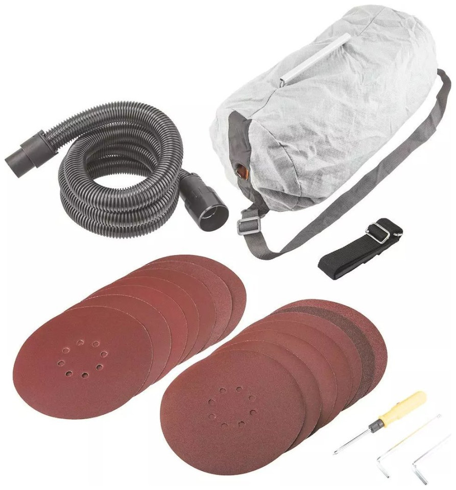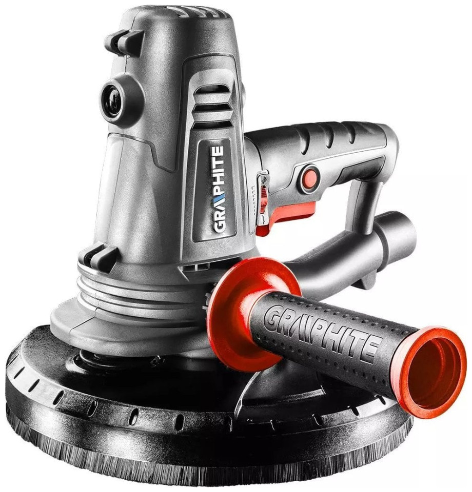 Graphite Szlifierka do gipsu 1050W, tarcza 225 mm, z systemem odpylania 59G262Wysokiej klasy szlifierka do gipsu GRAPHITE (nr ref. 59G262) o mocy 1050 W, przeznaczona do precyzyjnej obróbki powierzchni gipsowych. Szlifierka wyposażona jest w bezpośredni napęd tarczy szlifierskiej - z pominięciem wałka. Posiada możliwość płynnej regulacji obrotowej głowicy w zakresie od 800 do 2300 obrotów na minutę. Tarcza szlifierki o średnicy 225 mm. System odprowadzania pyłu z możliwością bezpośredniego podłączenia worka na pył lub rury odkurzacza zapewni porządek w miejscu pracy. Ponadto szlifierka została wyposażona w dodatkowy uchwyt obustronny. Na rękojeści głównej znajdują się gumowe nakładki ochronne, zapewniające komfort i stabilność podczas szlifowania. Dla bezpieczeństwa tarcza robocza została osłonięta szczotkową osłoną. Wymiana zużytego papieru ściernego odbywa się błyskawicznie, gdyż mocowany jest on na rzep. Szlifierka do gipsu posiada długi przewód zasilający o długości 5 m. Istnieje możliwość samodzielnej wymiany zużytych szczotek węglowych. W zestawie ze szlifierką znajdują się: papier ścierny (2x P80, 2x P120, 2x P150, 4x P180, 4x P240), wąż ssący, pas naramienny i worek na pył. Zgodność z europejskimi standardami zapewnia certyfikat CE.