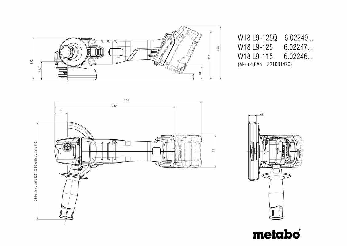 SZLIFIERKA KĄTOWA AKUMULATOROWA 125MM W 18 L 9-125 0*AH