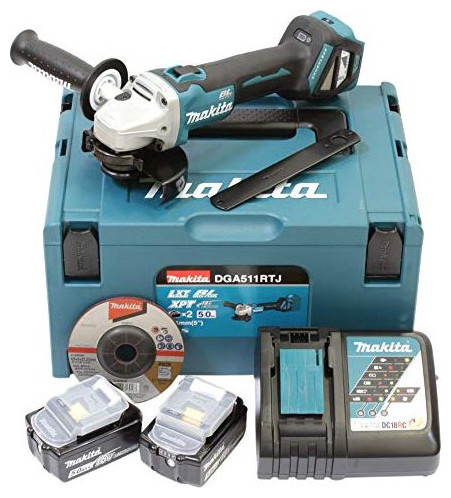 Zawartość opakowania: MAKPAC2, ładowarka DC18RC, 2 akumulatory BL1850B, tarcza szlifująca