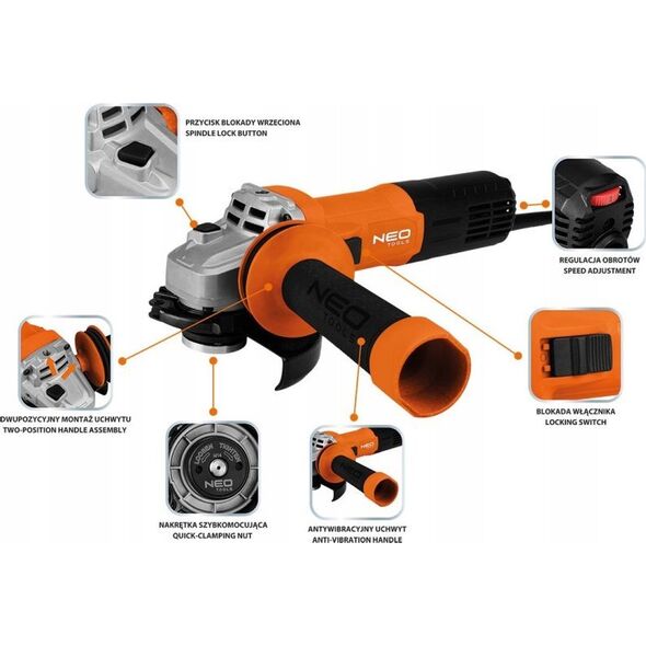 Γωνιακός τροχός Neo Γωνιακός τροχός 1000W, 125 mm