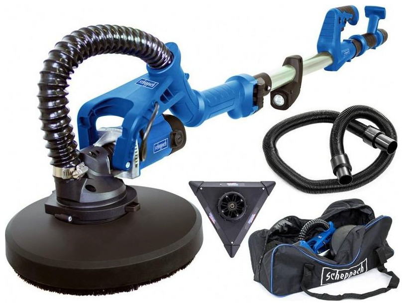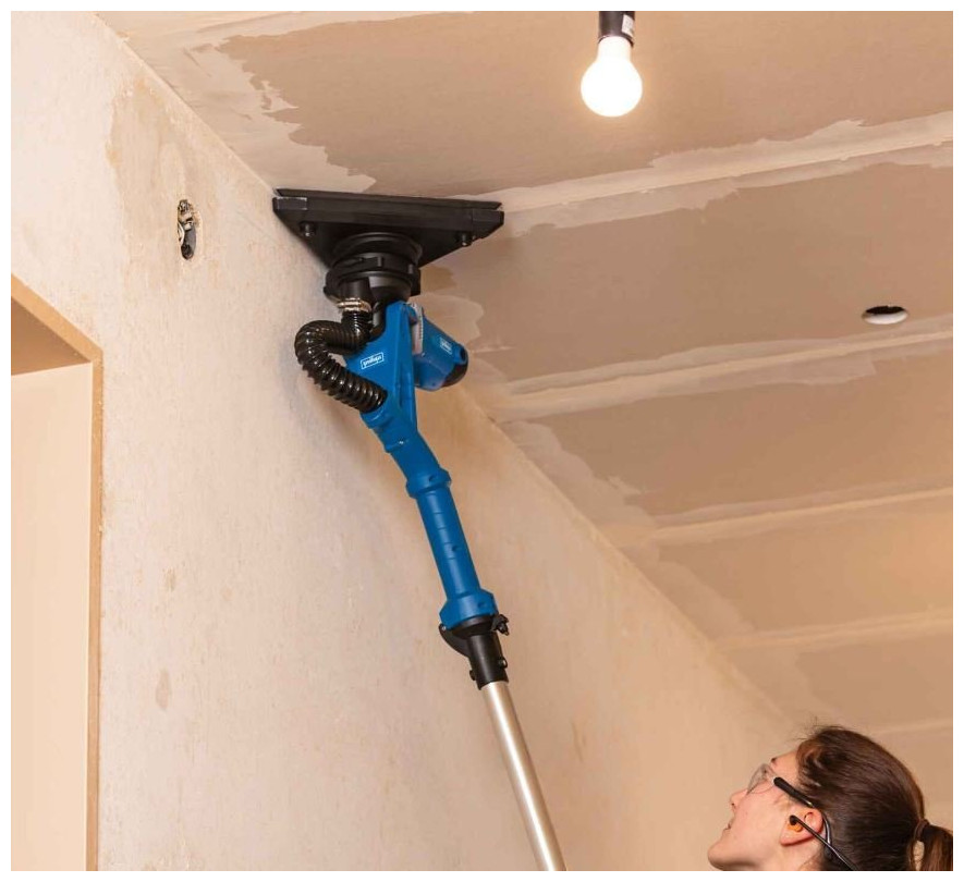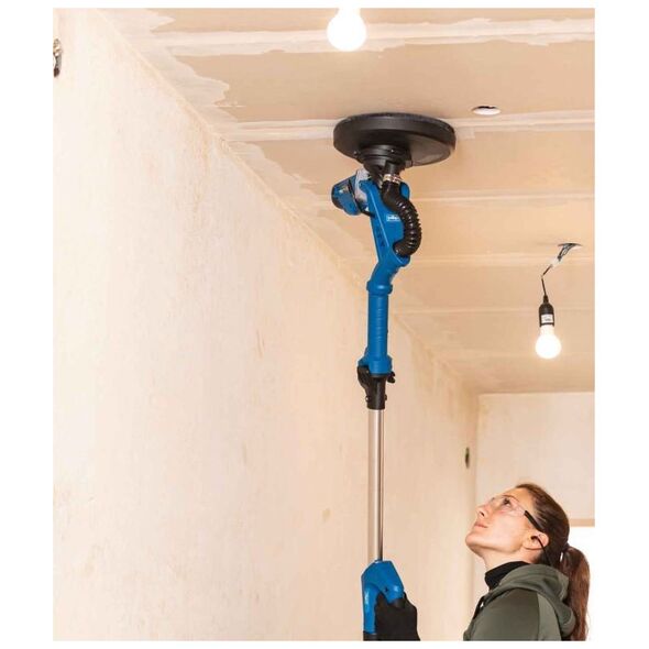 Μύλος λείανσης τοίχων και οροφών Είναι εξοπλισμένος με στρογγυλή και τριγωνική κεφαλή, που το καθιστά γενικό εργαλείο για εργασίες ανακαίνισης και κατασκευής, κατά την προετοιμασία επιφανειών για βαφή, ταπετσαρία, βερνίκωμα ή ακρυλική λαβή με εύρος ρύθμισης 1400 -1650 mm Ρύθμιση ταχύτητας .Εναλλάξιμες κεφαλές: στρογγυλές και τριγωνικές.Γυαλόχαρτα κολλημένα με Velcro.Εργονομική λαβή με αντιολισθητική επίστρωση.Τεχνικά στοιχεία: