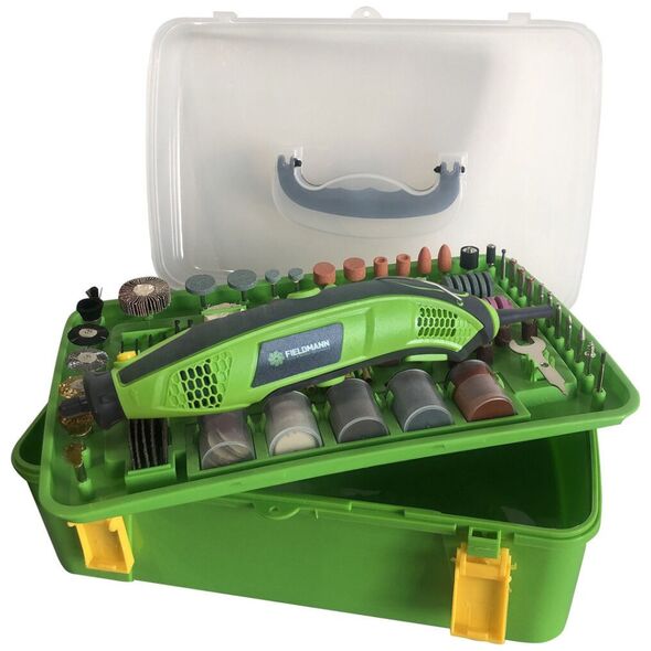 Τεχνικά στοιχεία: Τάση: 230V/50Hz Ισχύς: 170W Περιστροφές κινητήρα χωρίς φορτίο: 10000-35000/λεπτό Μέγεθος λαβής: 0,8-3,2 mm 440 τμχ αξεσουάρ