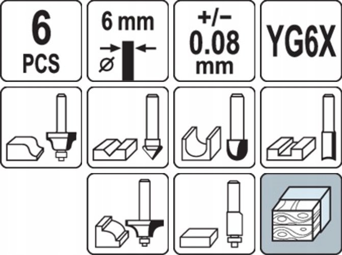 Κοπτικά ξύλου Yato YT.WID.FI 6mm σετ. 6 τεμ.