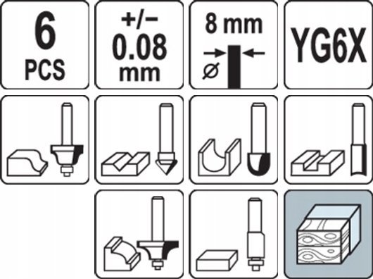 Κοπτικά ξύλου Yato YT.WID.FI 8mm σετ 6 τεμ.