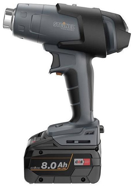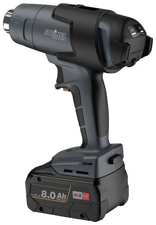 Πιστόλι θερμότητας μπαταρίας Steinel MH5 - νέο 2020 Άνετο, εύχρηστο, αποτελεσματικό πιστόλι θερμότητας που τροφοδοτείται από μπαταρία 18 V από την CAS - το θερμικό πιστόλι δημιουργήθηκε ως αποτέλεσμα της συνεργασίας μεταξύ Steinel και Metabo• ομαλή ρύθμιση θερμοκρασίας 50-600 °C. ρύθμιση με joystick κάθε 10 °C• ταχύτητα ροής αέρα μέγ. 600 l/min, σταδιακή ρύθμιση (6 επίπεδα)• προγραμματιστής με δυνατότητα να θυμάται 4 διαφορετικές ρυθμίσεις θερμοκρασίας και ροής αέρα• χρόνος προθέρμανσης ελάχ. 4 δευτερόλεπτα έως τη θερμοκρασία• χρόνος εργασίας μέγιστο 15 λεπτά σε έναν κύκλο φόρτισης μπαταρίας• το σετ περιλαμβάνει μπαταρία CAS 18V, φορτιστή ASC 30-36, βαλίτσα• σκανδάλη με προστασία από τυχαίο πάτημα• οπίσθιος φωτισμός LED• έξοδος σωλήνα Ø 34 mm για τυπικά ακροφύσια.
