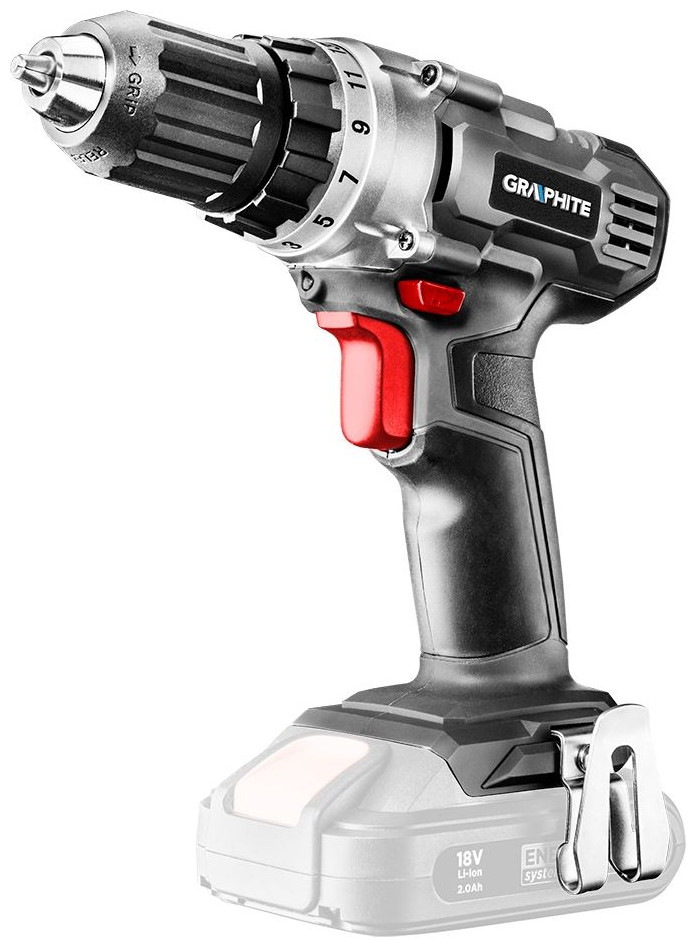 Τρυπάνι/οδηγός μπαταρίας Energy+ 18V, Li-Ion, 10 mm, μπαταρία 2Ah, φορτιστής, κουτί 58G000-SET1 Το GRAPHITE είναι ένα πλήρες σετ ηλεκτρικού εργαλείου μπαταρίας με μπαταρία και φορτιστή, που προσφέρεται σε πρακτικό κουτί. Το τρυπάνι/οδηγός πολλαπλών χρήσεων θα είναι χρήσιμο κατά την ανακαίνιση, τη συναρμολόγηση επίπλων, την κατασκευή τοίχων από γυψοσανίδα ή την κατασκευή κιόσκια ή παγκάκια κήπου. Εξοπλισμός: Τρυπάνι/οδηγός μπαταρίας Energy+ 18V, Li-Ion, αυτοσφιγκτήρας τσοκ 10 mm, χωρίς μπαταρία 58G000 GRAPHITE.