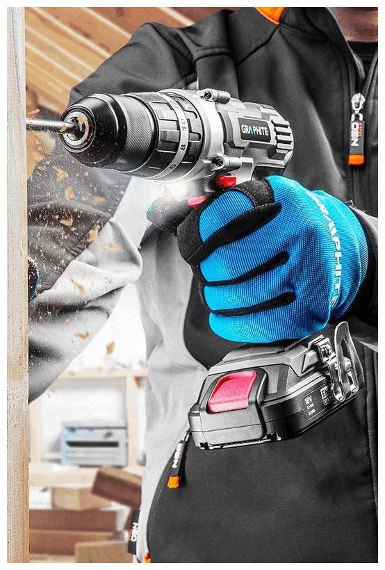 Το δραπανοκατσάβιδο μπαταρίας GRAPHITE με κρούση είναι μια ισχυρή συσκευή για εργασία σε δύσκολες συνθήκες, αλλά και με υλικά κατασκευής. Λειτουργεί με μπαταρία σειράς 2Ah ή 4Ah Energy+. Διαθέτει ομαλή ρύθμιση ταχύτητας σε 2 ταχύτητες και διακόπτη φοράς περιστροφής. Η βολική, αυτοσφιγκωτή λαβή σάς επιτρέπει να τοποθετείτε γρήγορα αξεσουάρ με διάμετρο 2-13 mm. Το LED φωτίζει την περιοχή εργασίας. Το τρυπάνι/οδηγός έχει εργονομικό σχήμα και λαστιχένια λαβή, χάρη στην οποία η εργασία εκτελείται με ασφάλεια και άνεση.