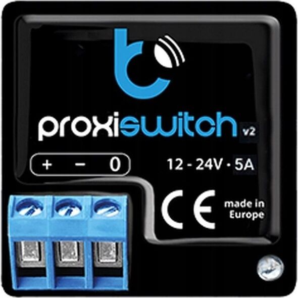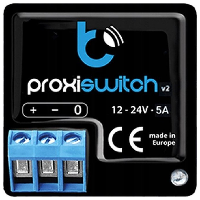 Przełącznik sterownik Blebox proxiSwitch 12-24VBezdotykowy, zbliżeniowy przełącznik ON/OFF 12-24V DC. Steruj dotknięciem lub zbliżeniem dłoni NAJWAŻNIEJSZE PARAMETRYNapięcie zasilania: 12 – 24 V DCMaksymalne natężenie prądu: 5AMaksymalna moc: 120 WZużycie energii: < 0,1WSygnalizacja sterownika: niebieska dioda diagnostycznaTryb pracy: bistabilny, bistabilny z pamięcią stanu, monostabilny NO, monostabilny NCZasięg detekcji: zależny od materiału: plexi, drewno lite, sklejka, płyta wiórowa - 3cm, metal - detekcja całą powierzchnią, płyty o przekroju plastra miodu - brak detekcjiMaksymalny czas detekcji w trybie monostabilnym: 8 sekundAutokalibracja: przy starcie oraz co 15 sekundSensor: zbliżeniowy, pojemnościowyWymiary: 38 x 38 x 19 mmObudowa: wykonana z kompozycji poliuretanowej nie zawierającej halogenów, samogasnąca dla klasy termicznej B (130°C)Stopień ochrony: IP20Sposób montażu: pod powierzchnią nieprzewodzącą, paski klejoweTemperatura pracy sterownika: od -20 do +50˚C Sterowanie dotykiem lub zbliżeniem Sterownik proxiSwitch wyposażony został w czujnik pojemnościowy oraz algorytmy, dzięki którym wykrywa zbliżenie dłoni do jego powierzchni. Niewidzialny przycisk Dzięki wysokiej czułości sterownika proxiSwitch, możesz go ukryć pod blatem kuchennym, z boku szafy, w ścianie, a nawet w środku innego przedmiotu! Tylko Ty wiesz o miejscu jego ukrycia i gdzie należy dotknąć lub zbliżyć dłoń aby sterować! Automatyczna kalibracjaDzięki specjalnym algorytmom, sterownik sam dostosowuje czułość, w zależności od otoczenia w którym go zastosujesz.Maksymalna grubość przez którą sterownik rozpozna dotyk lub zbliżenie dłoni to około 3 cm (dla płyty wiórowej, meblowej, litego drewna). Należy unikać mebli z „przekrojem plastra miodu” (przestrzeniami powietrza). 4 tryby pracy!Sterownik proxiSwitch może pracować w 4 trybach:bistabilny: przełącza stan po każdym zbliżeniu / dotknięciu dłonibistabilny z pamięcią: przełącza stan po każdym zbliżeniu / dotknięciu, dodatkowo pamięta swój stan po zaniku zasilaniamonostabilny NO: włącza wyjście kiedy wykrywa zbliżenie dłoni lub dotyk. Maksymalny czas impulsu to około 5 sekundmonostabilny NC: wyłącza wyjście kiedy wykrywa zbliżenie dłoni lub dotyk. Maksymalny czas impulsu to około 5 sekund Kompatybilność ze sterownikami WiFiSterownik proxiSwitch można również zastosować jako dotykowy przycisk do innych sterowników BleBox.Podłącz wyjście proxiSwitch pod pod wejście przyciskowe sterowników DC (12-24V) aby sterować nimi poprzez dotyk lub zbliżenie dłoni (m.in. wLightBoxS, wLightBox, pixelBox, switchBoxDC)
