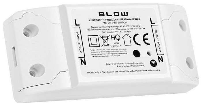 Inteligentny przekaźnik włącznik SMART sterowany WiFi Umożliwia sterowanie za pomocą telefonu komórkowego Niewielki pobór prądu w trybie czuwania Prosta instalacja oraz obsługa Idealne do montażu w ciężko dostępnych miejscach oraz w puszkach podtynkowych Dwukierunkowa informacja zwrotna w czasie rzeczywistym Możliwość skorzystania z funkcji sterowania głosowego Zarządzaj urządzeniami elektrycznym z dowolnego miejsca z dostępem do internetu Inteligentny włącznik sterowany przy pomocy bezprzewodowej łączności Wi-Fi. Umożliwia połączenie z internetem, dzięki czemu możemy sterować każdym dowolnie wybranym urządzeniem za pomocą naszego smartfonu lub tabletu. Urządzenie dodatkowo umożliwia wykorzystanie głosowego sterowania Amazon Echo smart box - należy jedynie wcześniej odpowiednio skonfigurować tą opcję. Zarządzaj domowymi urządzeniami z dowolnego miejsca Inteligentny przekaźnik Wi-Fi pozwoli Ci dobrowolnie decydować o działaniu lub odłączeniu od prądu różnego rodzaju urządzeń gospodarstwa domowego. Będziesz mógł tego dokonać praktycznie w każdym miejscu, niezależnie jak daleko jesteś od domu - wystarczy połączenie przekaźnika z internetem za pomocą routera i smartfon z dedykowaną aplikacją. Sama konfiguracja jest bardzo łatwa i przyjemna. Funkcja harmonogramu Funkcja harmonogramu za pomocą aplikacji pozwoli na dokładne zaplanowanie włączenia lub wyłączenia urządzeń podłączonych do przekaźnika. Obsługa funkcji jest niezwykle prosta, ustawienie jej według własnego uznania nie będzie stanowić żadnego problemu. Harmonogram pozwoli nam nie tylko na jeszcze wygodniejsze sterowanie, ale pomoże także ograniczyć zużycie prądu. Informacje o produkcie Złącza wejścia / wyjścia Maksymalne obciążenie wyjścia 10A 2300W Obsługiwane protokoły i standardy Standard Wi-Fi 802.11 b/g/n Częstotliwość Wi-Fi 2,4GHz Obsługiwane systemy Android, iOS Zasilanie Napięcie wejścia 90 - 230V AC 50/60Hz Maksymalne obciążenie wyjścia 10A 2300W