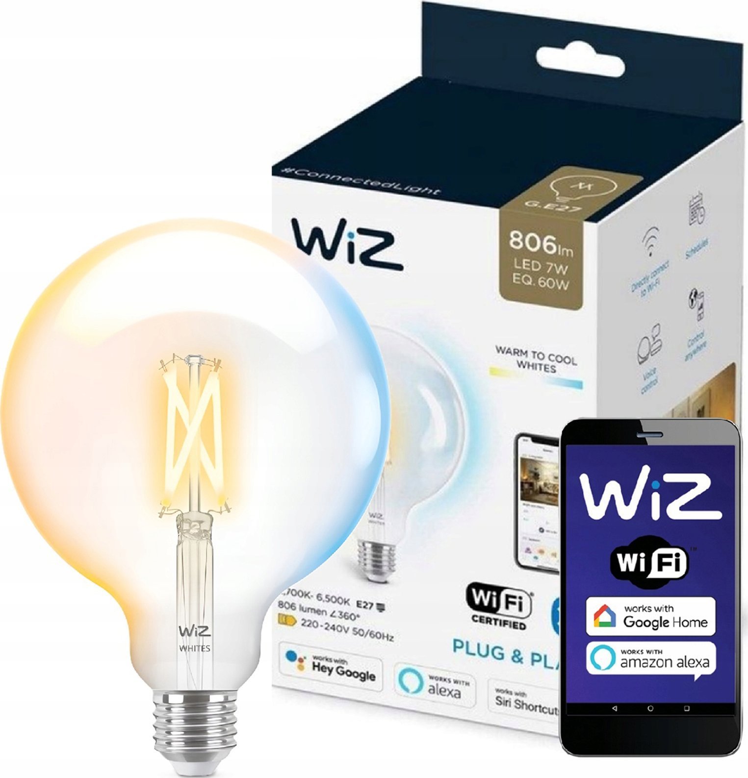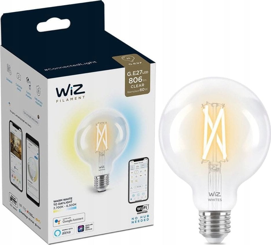 Λάμπα Signify WiZ Filament 60W E27 Σφαιρική G125 Διάφανη Μονή Συσκευασία