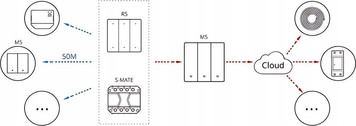 The M5 Matter works with the separately available NSPanel, allowing control of lighting and home appliances via a touch screen. Both devices are available in the same color, allowing you to decorate your home's interior with consistency. What's more, with the R5 Scene Controller you can control the same light from two different locations, eliminating the need for complicated wiring.