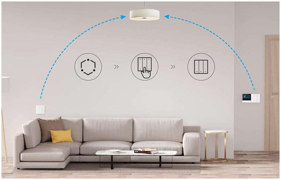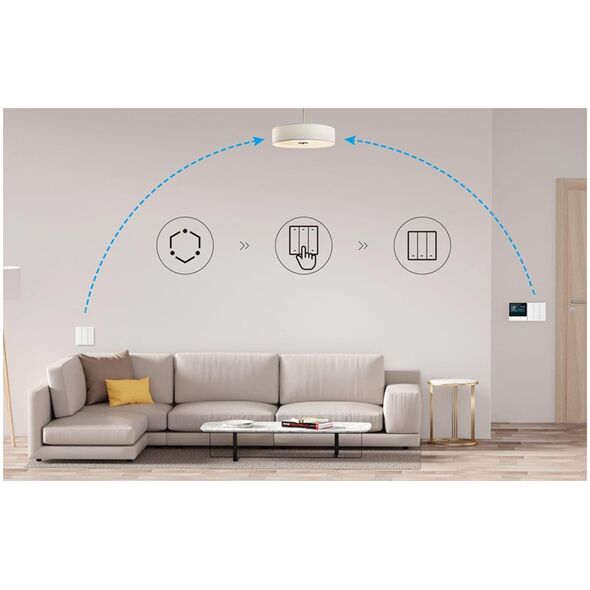 Experience how simple and convenient smart home management can be. If you don't want to control your devices located in different rooms via an app, you can use the R5 switch. The eWeLink-Remote gateway function allows you to locally control your smart appliances at a distance of up to 90 meters. 2-way lighting control is also possible using an additional M5 switch (sold separately).