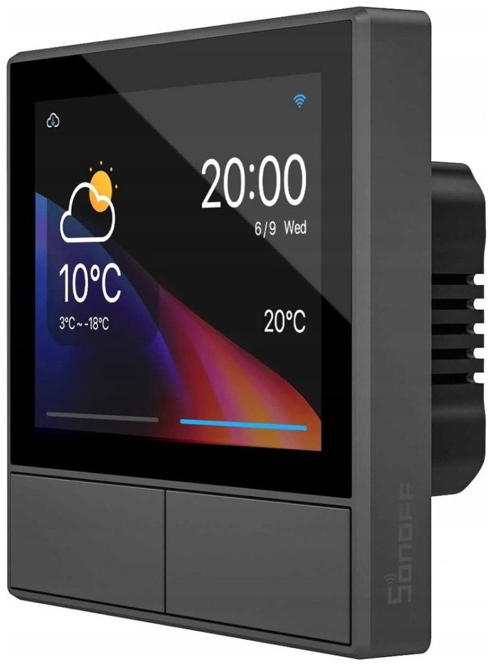 Τώρα μπορείτε να χειρίζεστε άνετα τις συσκευές σας και να ενεργοποιείτε επιλεγμένες έξυπνες σκηνές με λίγα μόνο αγγίγματα. Ο επιτοίχιος διακόπτης Sonoff είναι εξοπλισμένος με πίνακα HMI με οθόνη αφής που παρέχει γρήγορη πρόσβαση σε πολλές χρήσιμες λειτουργίες. Με αυτό μπορείτε εύκολα να ελέγξετε τον φωτισμό, να ρυθμίσετε τον κλιματισμό και πολλά άλλα! Επιπλέον, υπάρχουν 2 φυσικά κουμπιά κάτω από την οθόνη που θα σας επιτρέψουν να ελέγχετε ανεξάρτητα 2 συσκευές - για παράδειγμα αυτές που χρησιμοποιείτε πιο συχνά.