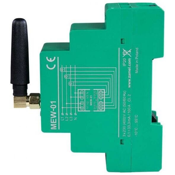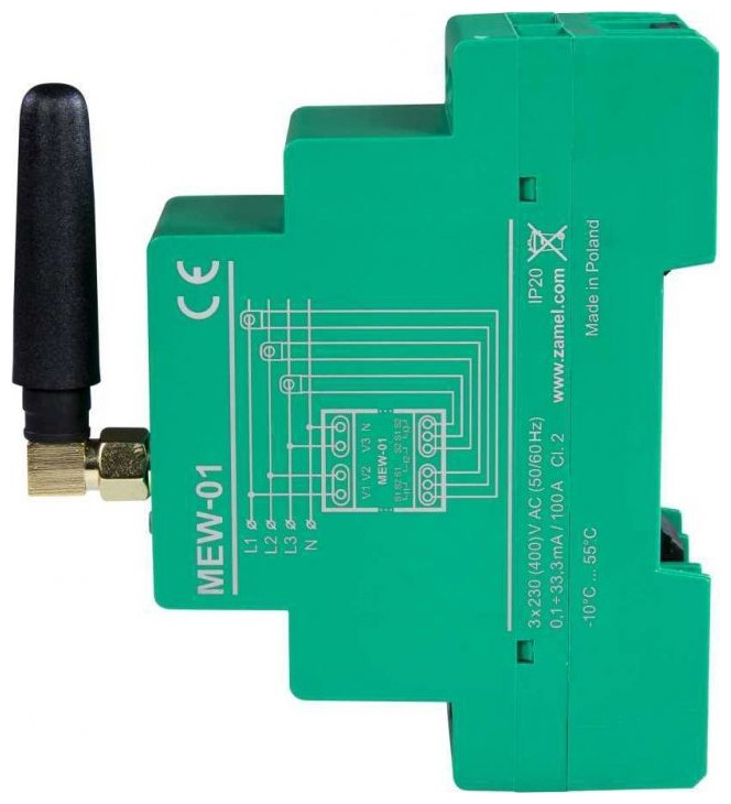 Ο δέκτης MEW-01 έχει σχεδιαστεί για εγκατάσταση σε ερμάρια πίνακα διανομής σε ράγα TH35 (DIN). Η συσκευή καταλαμβάνει δύο μονάδες. Σημαντικό στοιχείο είναι η σύνδεση των μετασχηματιστών ρεύματος 100Α και της κεραίας (περιλαμβάνεται στο σετ). Εάν η κεραία πρέπει να εγκατασταθεί εκτός του πίνακα διανομής (κυρίως μεταλλικοί πίνακες), θα πρέπει να χρησιμοποιηθεί μια εξωτερική κεραία για το σκοπό αυτό. Η κεραία διαθέτει υποδοχή SMA.