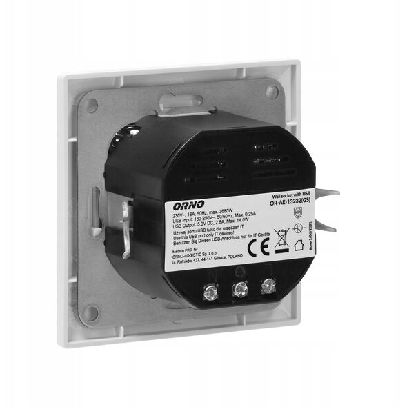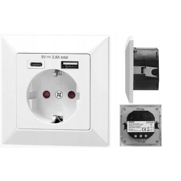 Μονή πρίζα 2P+Z (Schuko), USB-A + USB-C, έξοδος 5VDC, μέγιστο 2,8A