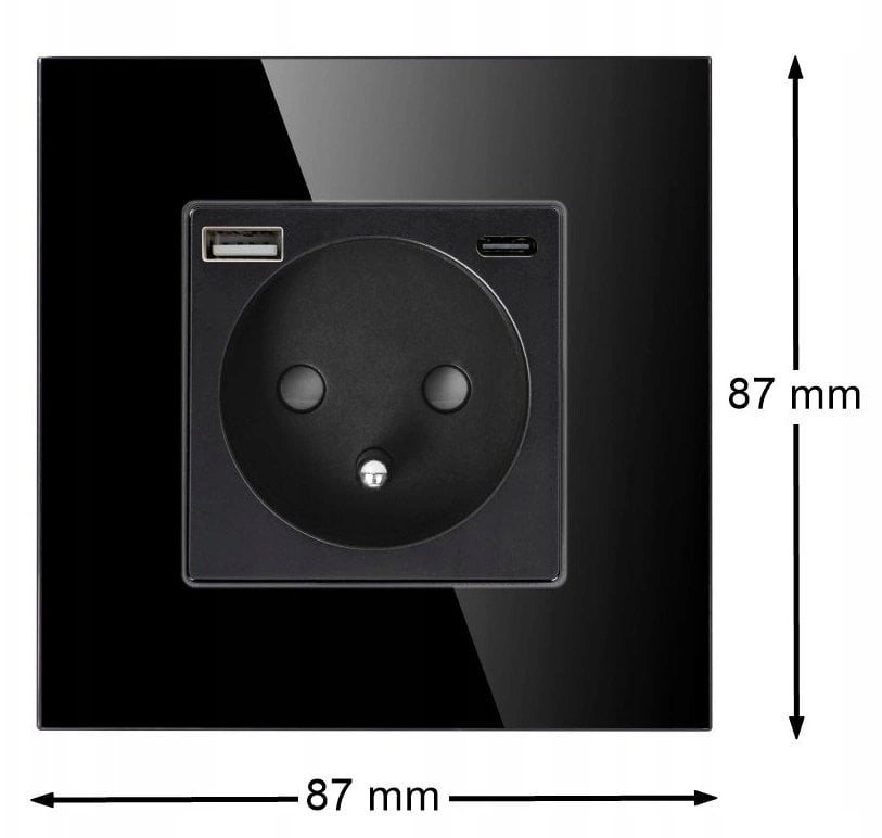 Gniazdo pojedyncze 2P+Z, USB-A + USB-C, PD, max. 20W, czarny