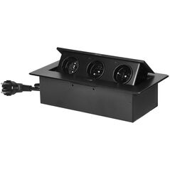 Πρίζα επίπλων ενσωματωμένη στον πάγκο Orno OR-GM-9033/B με επίπεδη φρεζαρισμένη άκρη και καλώδιο 1,5m 3x2P+Z μαύρο