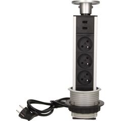 Πρίζα επίπλων Orno FS-17 τριπλή ανασυρόμενη από τον πάγκο με φορτιστή USB και καλώδιο 1,8m 3x2P+Z inox