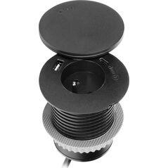 Πρίζα επίπλων Ø6cm, ενσωματωμένη στον πάγκο με συρόμενο κάλυμμα, φορτιστή USB και καλώδιο 1,9m, 1x2P+Z (Schuko), 2xUSB (τύπος A+C| P