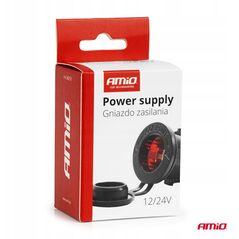 Πρόσθετη πρίζα τροφοδοσίας για ενσωμάτωση με κόκκινο φωτισμό 12v 24v AMIO-04219
