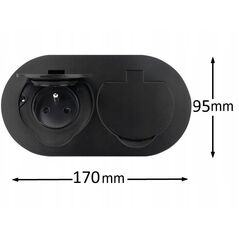 Στεγανή ηλεκτρική πρίζα διπλή, οβάλ, IP55, 2x2P+Z(French), μαύρη