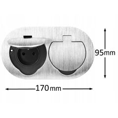 Στεγανή διπλή ηλεκτρική πρίζα, οβάλ, IP55, ασημί